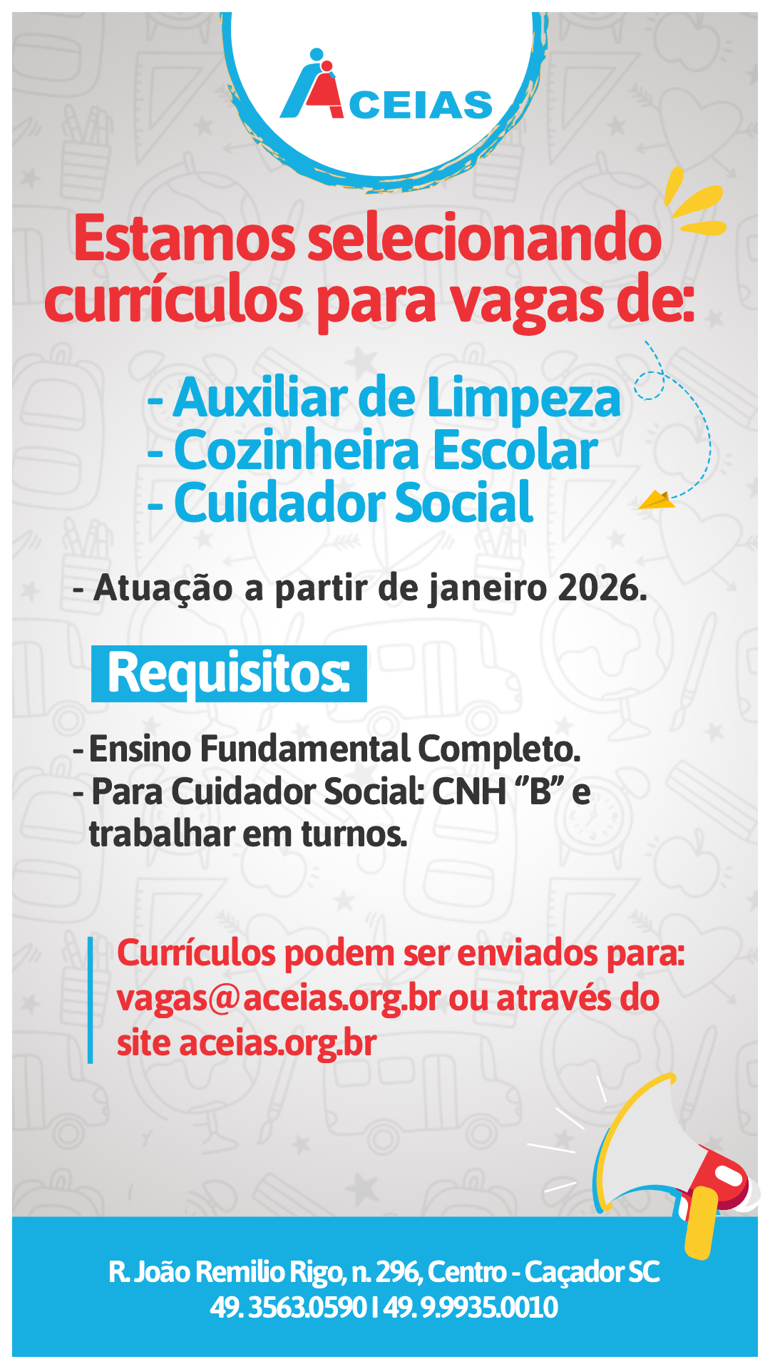 Auxiliar de Limpeza / Cozinheira Escolar / Cuidador Social
